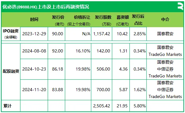這也是優必選上市不到一年以來的第3次配售,前兩次分彆: